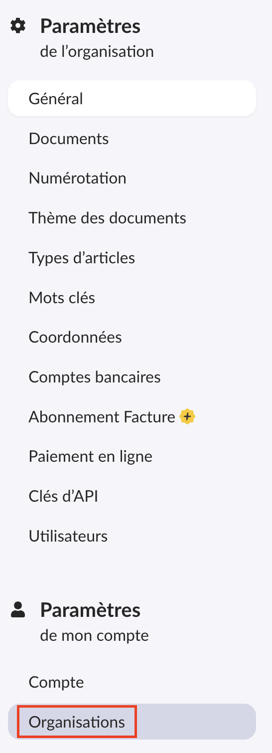 2. Dans les paramètres de votre compte, sélectionner "Organisation".