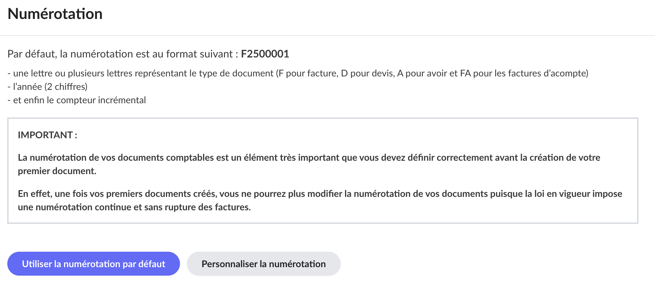 6. Choisissez les paramétrages de votre numérotation.