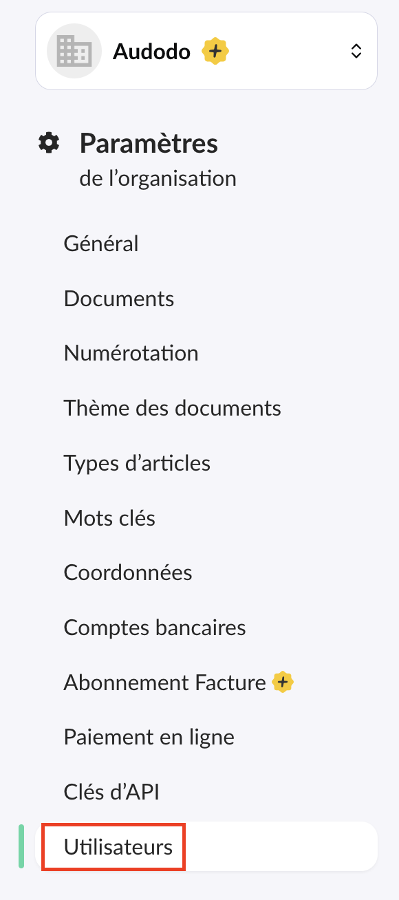 1. Depuis les paramètres de l'organisation, cliquez sur "Utilisateurs".
