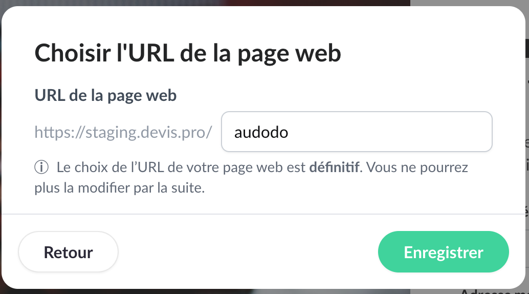 A noter que vous pouvez modifier seulement une fois votre URL. Ensuite, elle sera définitive.