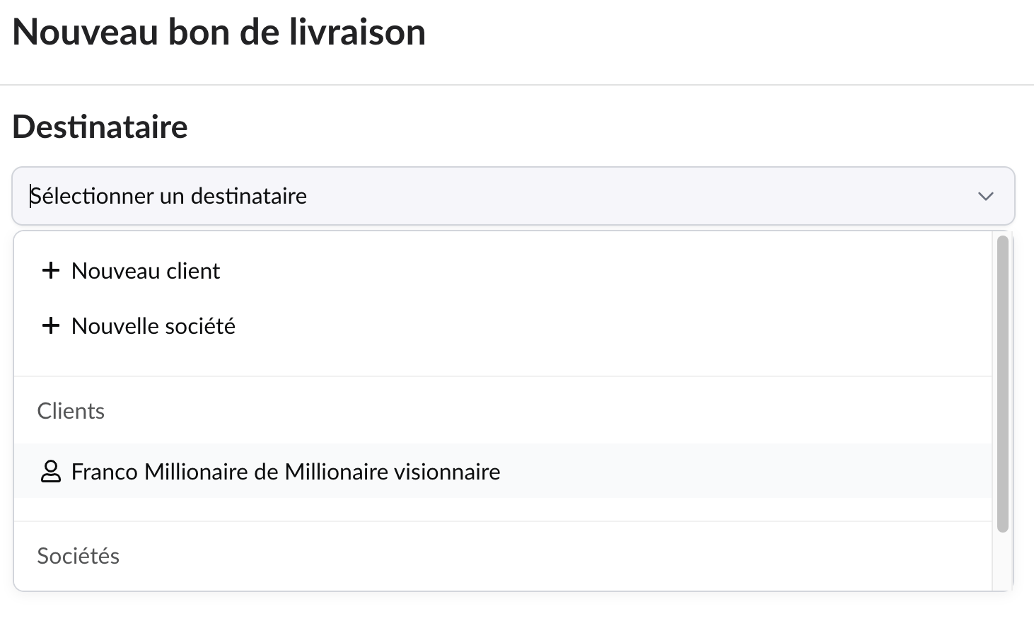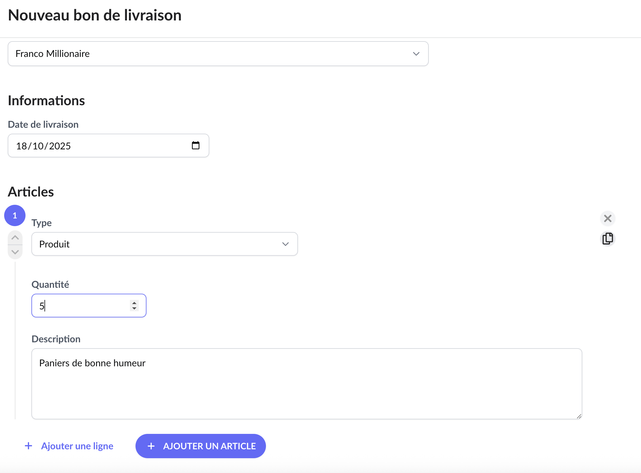 5. Créer un bon de livraison à partir d'une fiche client/société