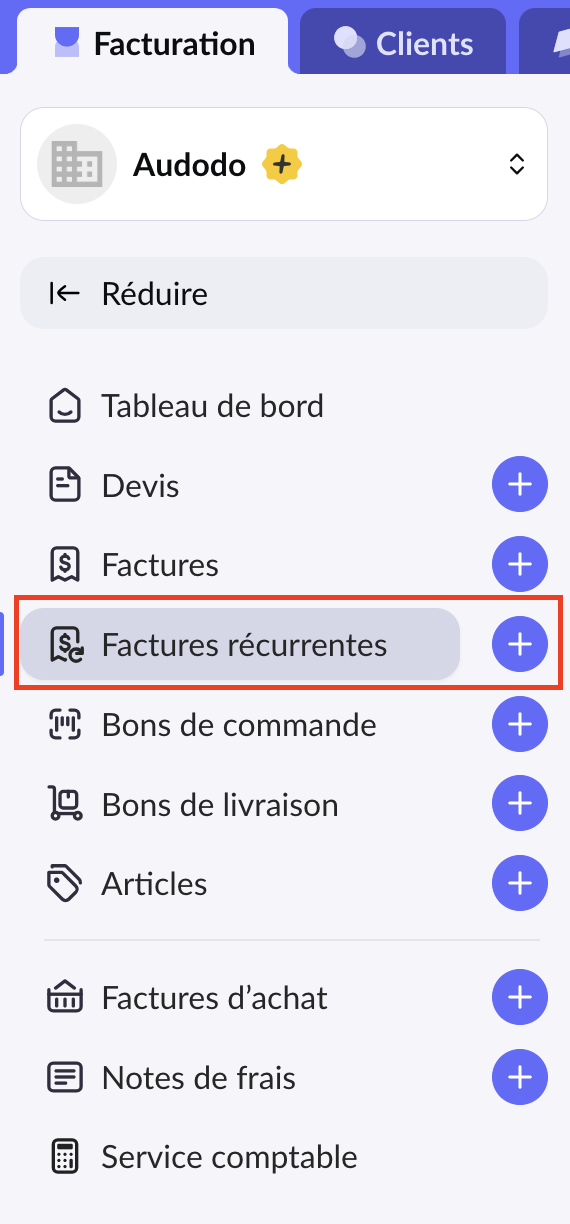 Accédez au menu “Factures récurrentes” depuis la barre latérale.