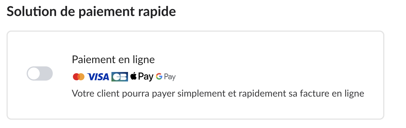 Activez le paiement en ligne pour ajouter un lien de paiement sur vos factures.