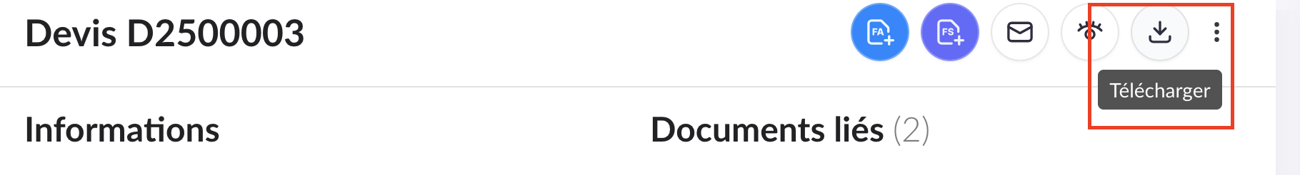 Cliquez sur l'icône "Télécharger" (flèche vers le bas) pour récupérer le devis en format PDF.