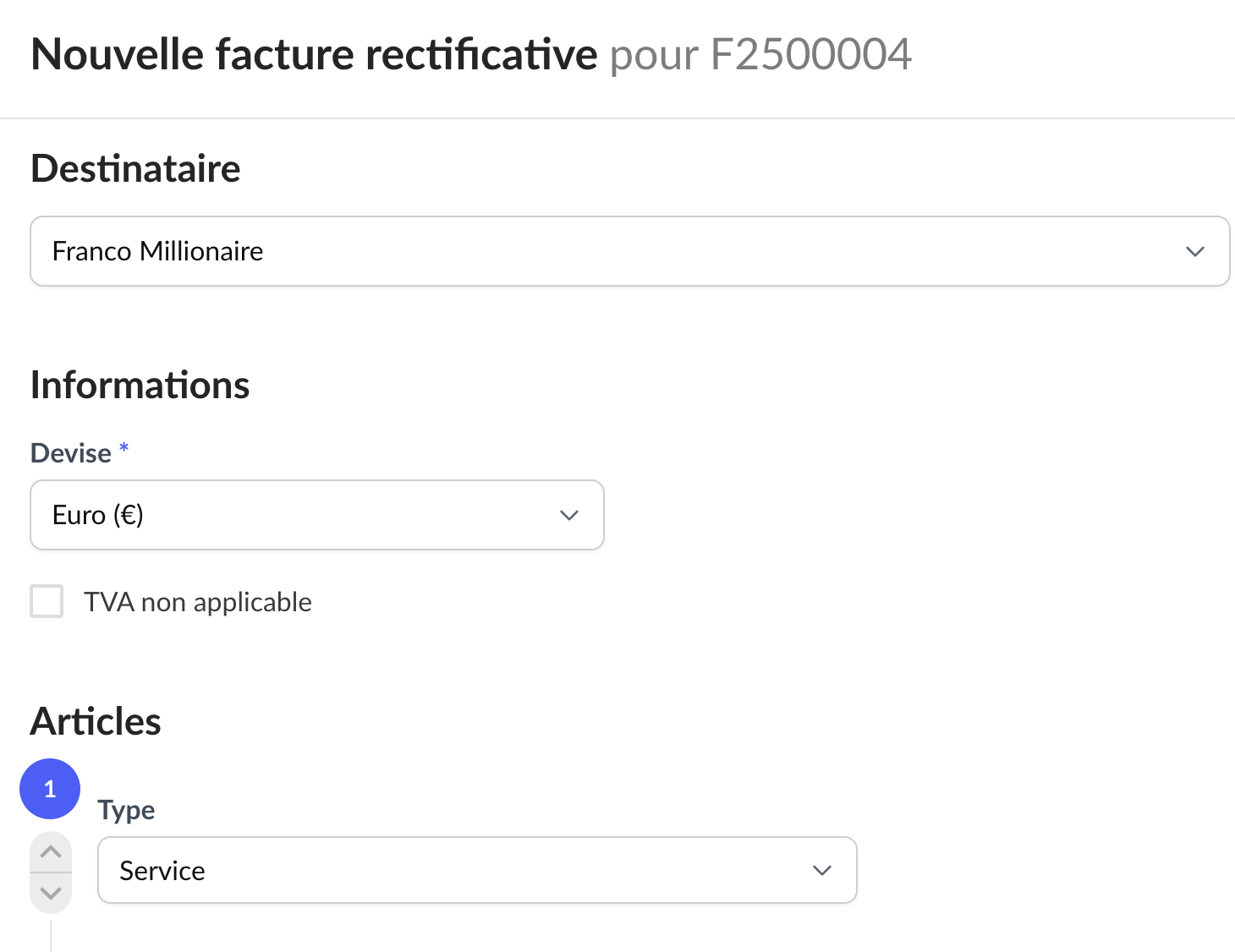3. Accédez ensuite à l'édition de la facture rectificative et modifiez les informations souhaitées.