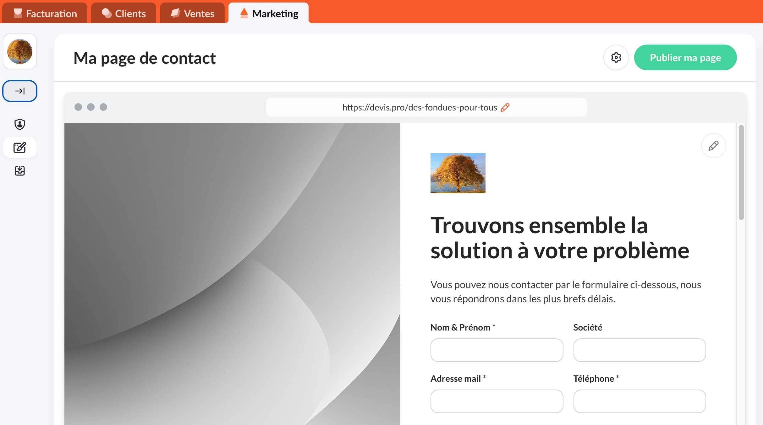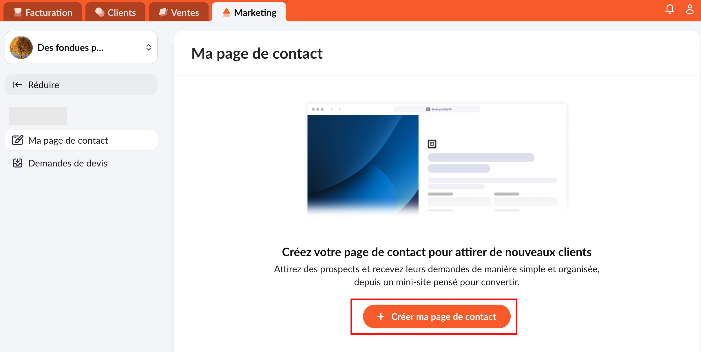 2. Cliquez sur "Créer ma page de contact".
