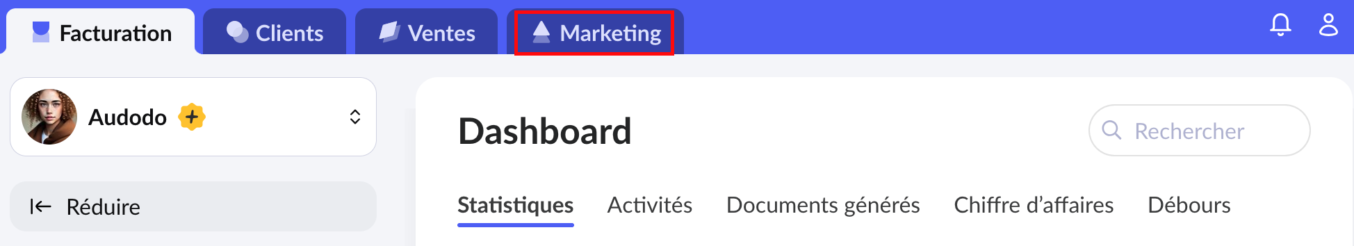1. Accédez à cet onglet en cliquant sur "Marketing".