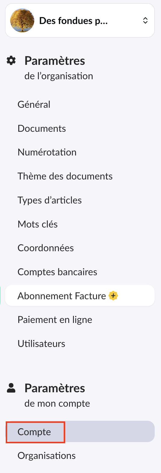 1. Rendez-vous dans les paramètres de votre compte.