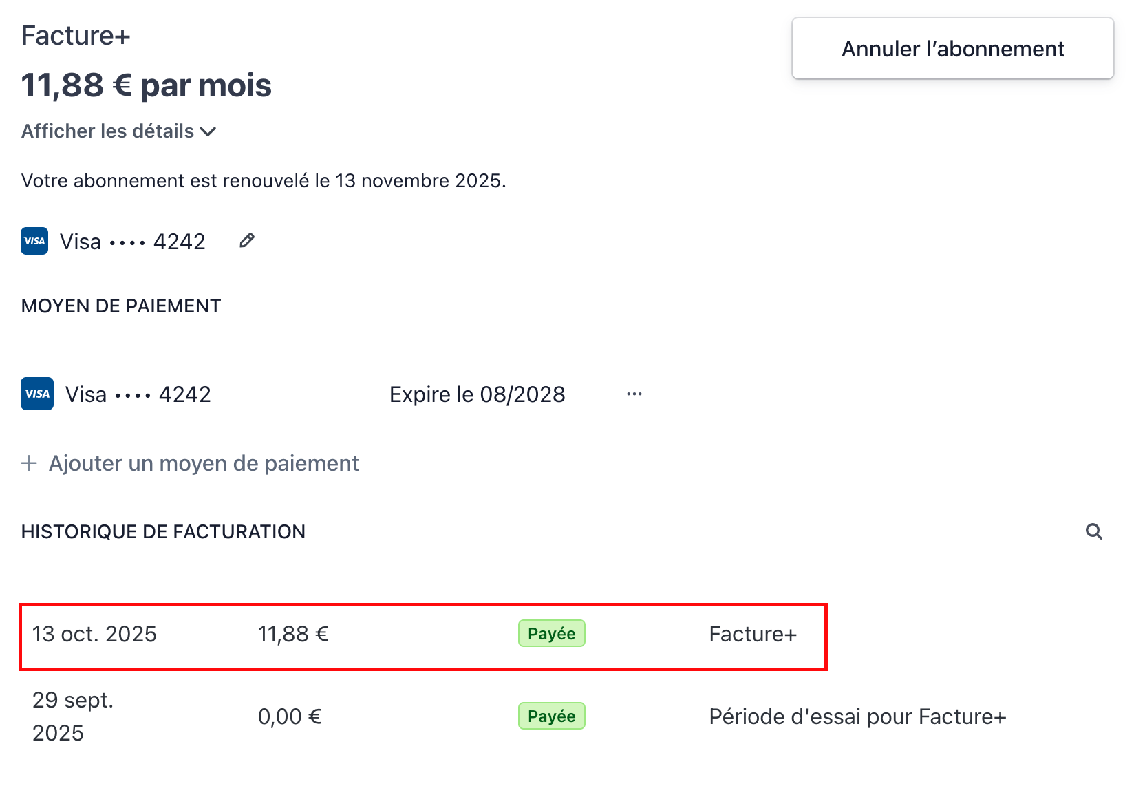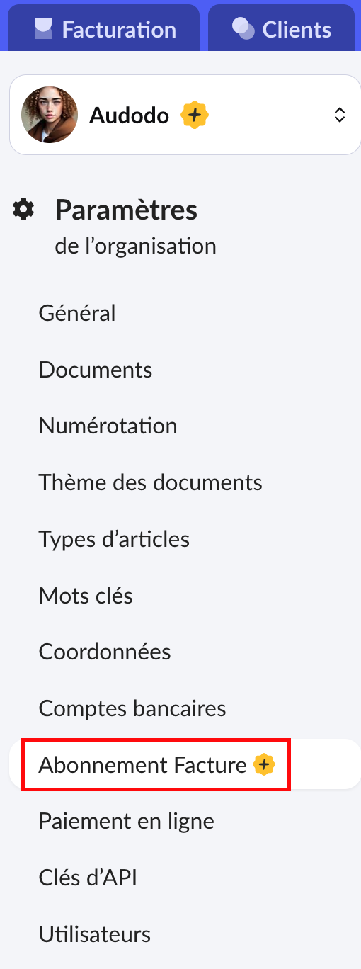 2. Cliquez ensuite sur "Abonnement Facture+".