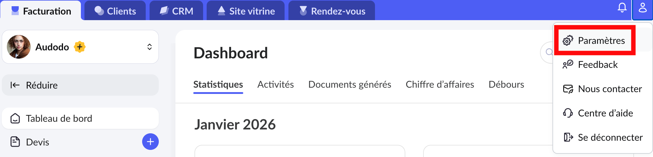 1. Depuis votre page d'accueil, rendez-vous dans les paramètres de votre compte.