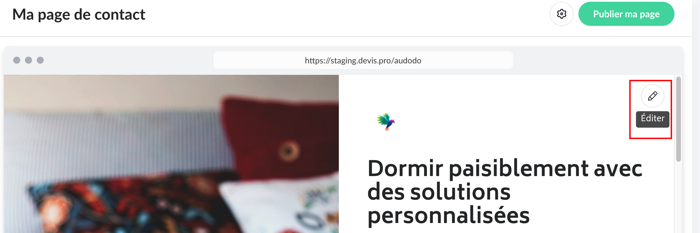 1. Pour modifier le header de votre page, cliquez sur l'icône du crayon en haut, à droite de votre écran.